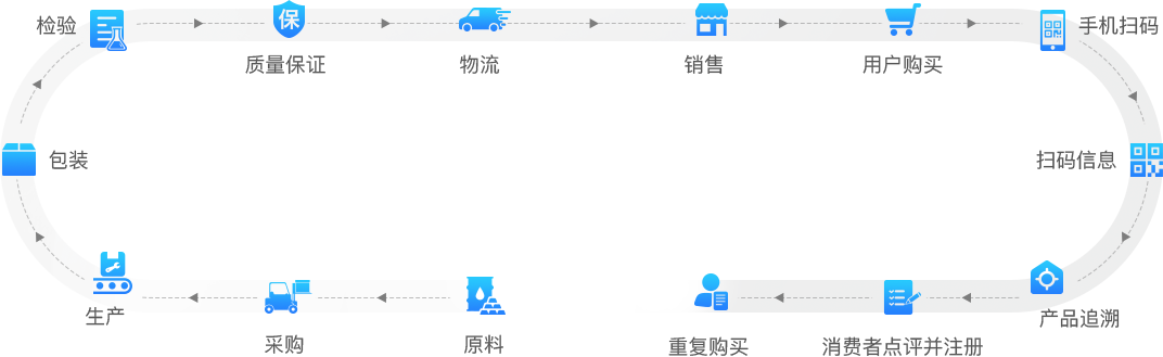 通过条形码、二维码、无线射频识别标签等方式对物品赋予唯一防篡可信的“身份证”——追溯码,给予物品身份标识。